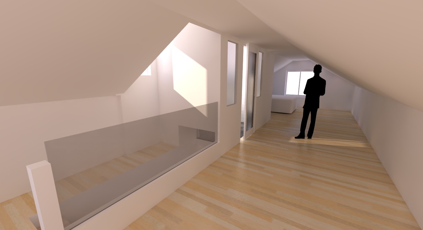 The attic level saw the addition of a new larger bathroom that projects slightly above the original ridge line, adding a subtle and unique accent to the unique cottage character of the existing home. A small elongation of this new dormer allowed for the inclusion of windows to bring natural light into the centre of the attic, where is was needed. Interior (frosted) windows and a glass sliding door for the bathroom, maximize natural light penetration into the attic.
