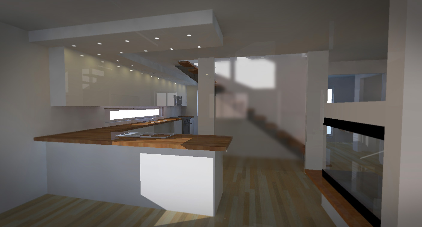 The changes to the ground level focused on opening up the original compartmentalized layout, a new kitchen, a new stair way built to current code standards, and reorganizing the approach to a entry along the redesigned courtyard. New lighting, finished and custom cabinets create a warm atmosphere, while maximizing useable space.